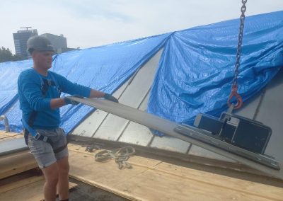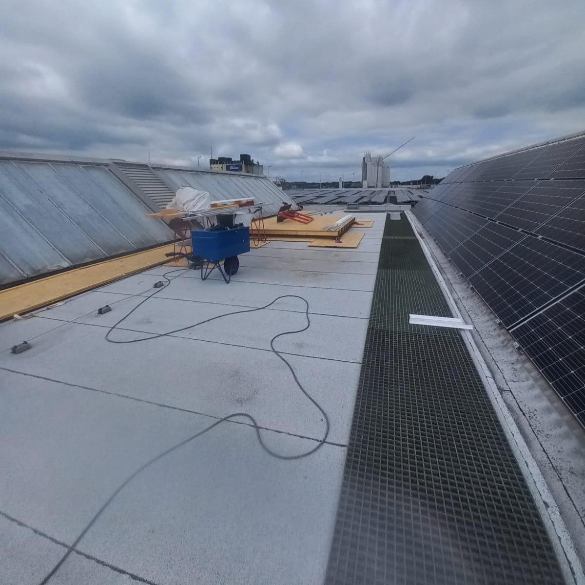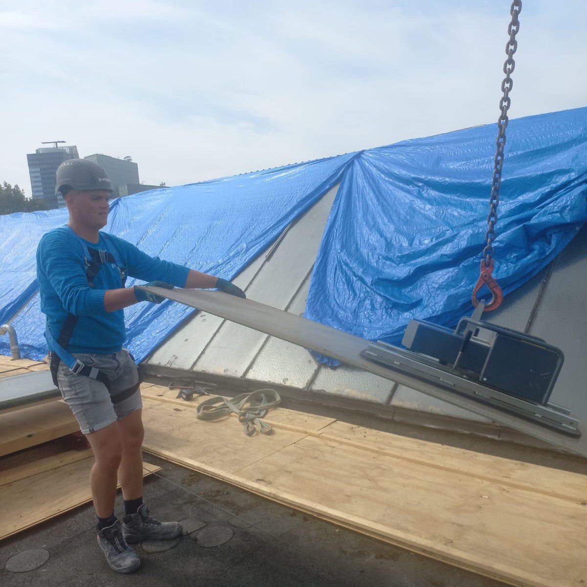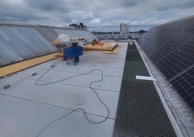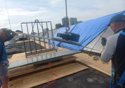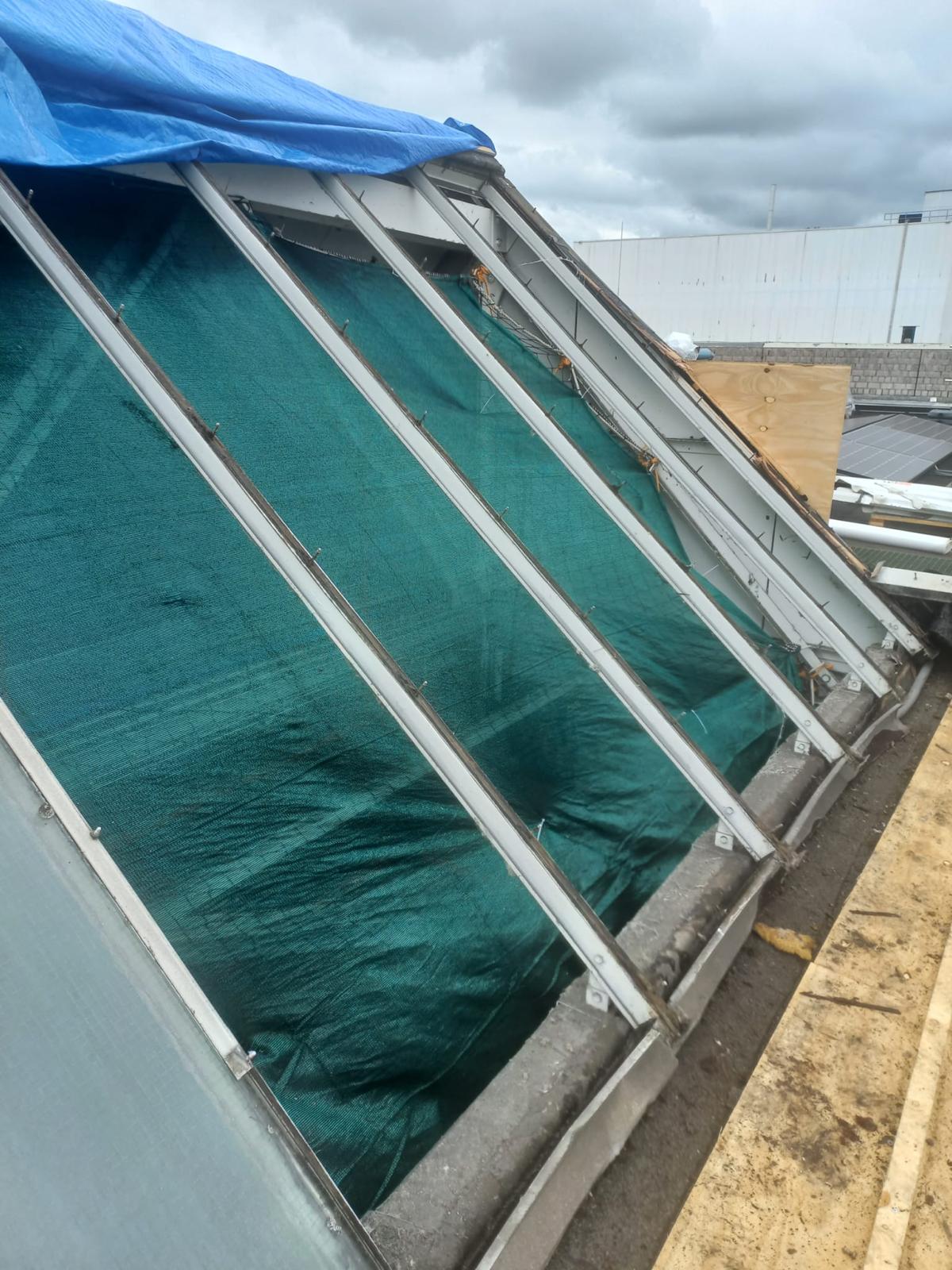 In opdracht van bouwkundig aannemer VDR verwijderden we asbesthoudende sandwichpanelen aan beide zijden van de lichtstraat op het dak van Scania in Zwolle. Ook demonteerden we de glas- en staalconstructie van de lichtstraat voor vervanging.